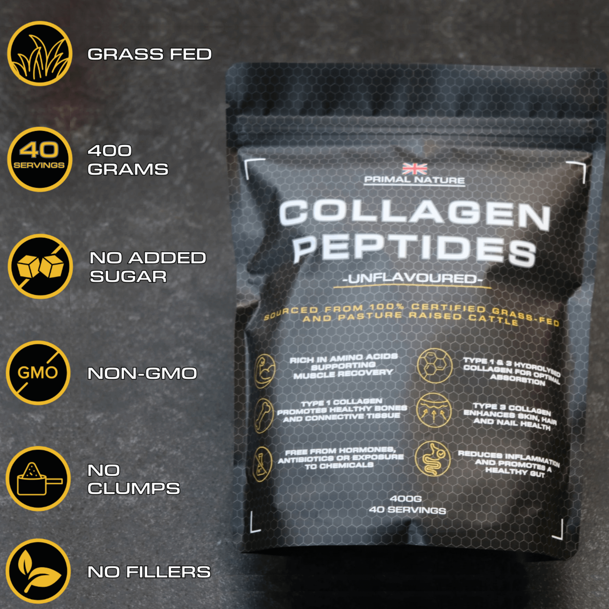 Our hydrolyzed collagen peptides effortlessly blend into your favorite beverages, providing crucial support for joints, skin, and gut health. This easy addition to your daily routine helps restore the body’s foundation, promoting recovery and resilience.